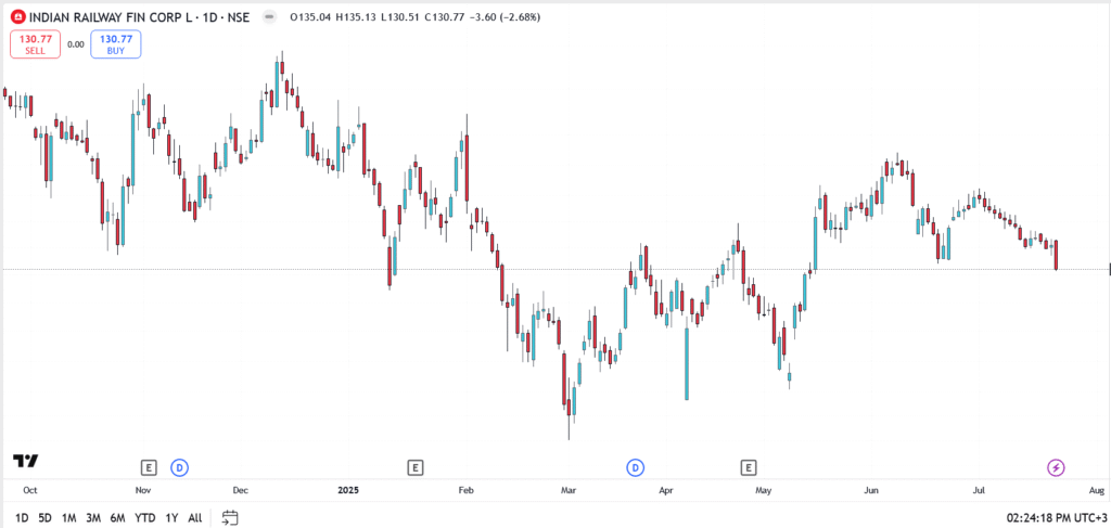 Indian Railway Finance Corporation (NSE: IRFC) fell over 2.6% to ₹130.77 today. The dip follows exchange notices issued by the NSE and BSE over board compliance issues tied to the March 2025 quarter. With the company awaiting key appointments from the Ministry of Railways, market participants appear uneasy ahead of IRFC’s Q1 FY26 earnings.