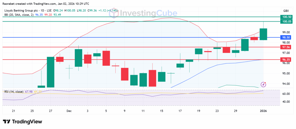 Lloyds share price daily chart on January 2, 2026 with key support and resistance levels created on TradingView