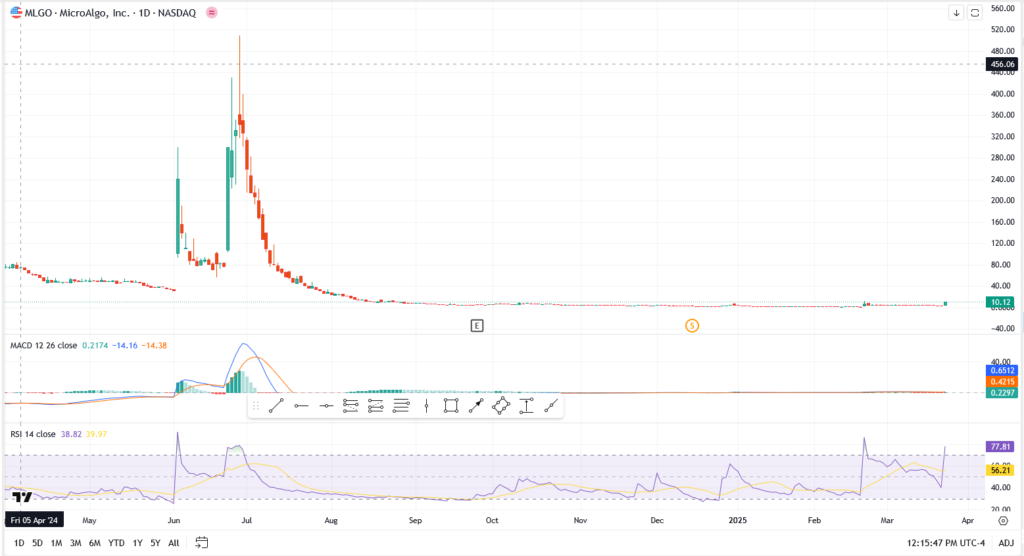 Let’s be blunt: MLGO’s chart history raises red flags. After its parabolic spike in 2023, the stock collapsed by over 90% within weeks. That’s why today’s move—while technically impressive—needs to be viewed through a cautious lens.