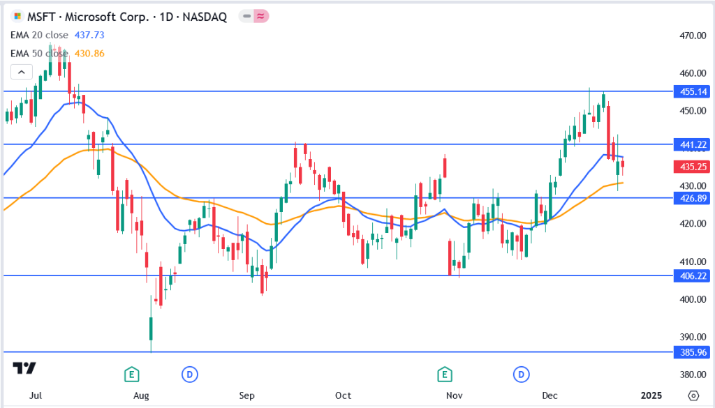 - $441.22: A key resistance level that Microsoft needs to reclaim to regain bullish momentum.