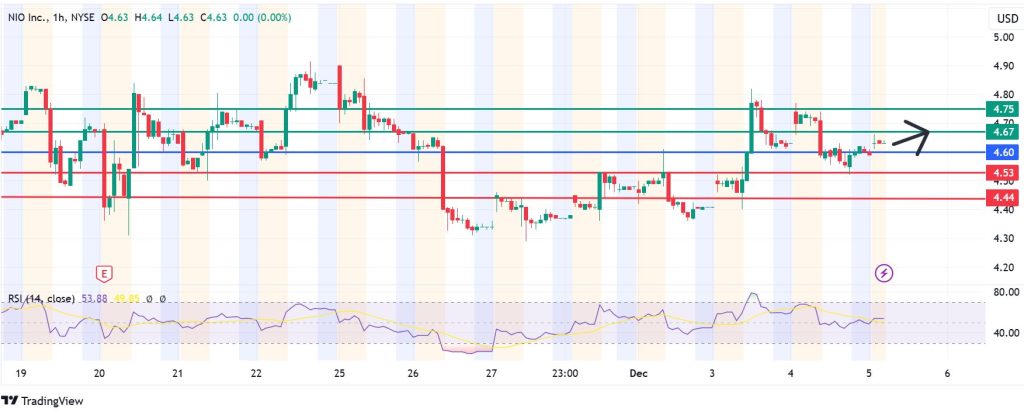 Nio stock price pivots at $4.60. Action above this level will favour the upside. Otherwise the sellers will be in control.