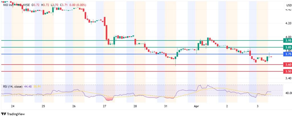 Nio stock price pivots at $3.75 and the momentum favours the sellers to stay in control. The stock will likely find the first support at $3.60, but a stronger downward momentum will break below that level and test $3.50.