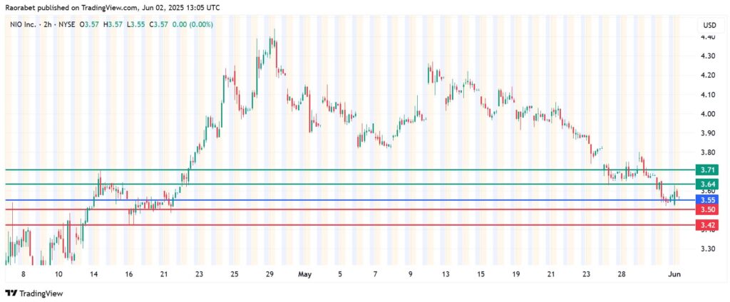 Nio stock price pivots at $3.55 and action above that level favours the upside to prevail. The first resistance will likely be at $3.64, but a stronger momentum will break above that level and potentially send the stock higher to test $3.71.