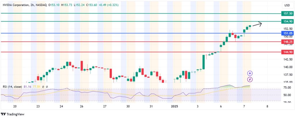 The momentum on Nvidia stock price calls for more upside above the pivot mark at $151.05. That will likely see the first resistance encountered at $154.90. However, if the buyers extend their control, NVDA could break above that barrier and test $157.50.