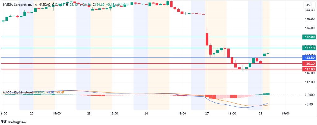 Conversely, the momentum will shift to the downside if NVDA breaks below $122.80. That will likely see the first support come at $120.20 The upside narrative will be invalid if the stock breaks below that level. Also, such a move could strengthen the downward momentum and test the second support at $117.80.