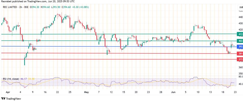 The momentum on REC share price calls for further upside above ₹392. With the buyers in control, the action will likely head up and encounter the first resistance at ₹402. An extended upside momentum will break above that level and potentially test ₹412.