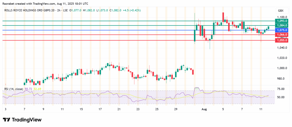Alternatively, the momentum could shift to the downside following a break below 1,075p. If that happens, Rolls Royce share price could go lower and find its initial support at 1,066p. Breaking below that level will invalidate the upside narrative and potentially clear the path to test 1,055p.