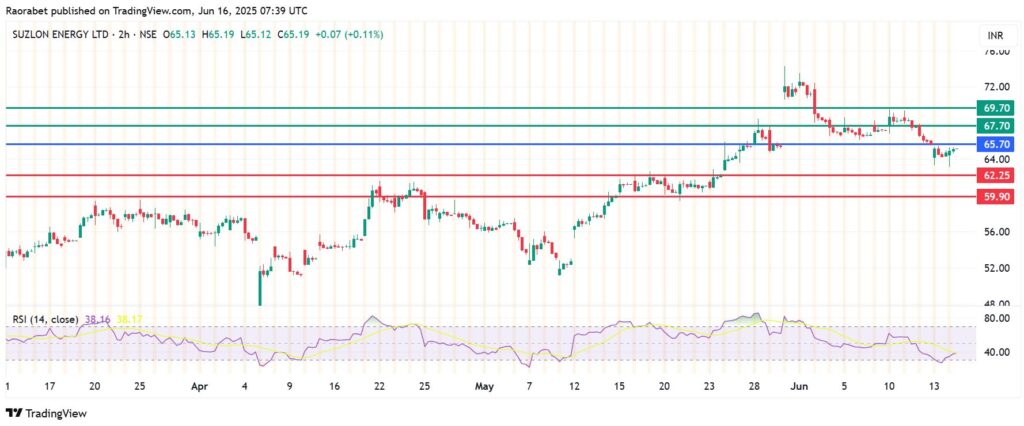 - The momentum on Suzlon Energy share price is currently bearish-leaning but it does not reflect company-specific fundamentals.
