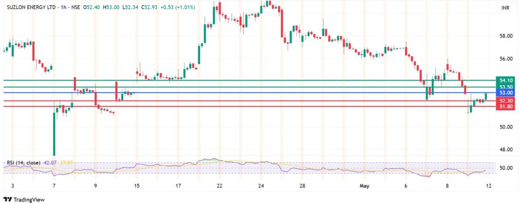 The momentum on Suzlon Energy share price signals that the downside will likely prevail as resistance persists at Rs 53.00. That will likely see the first support come at Rs 52.30. An extended control by the sellers will take the action lower, with the second support likely to be established at Rs 51.80.