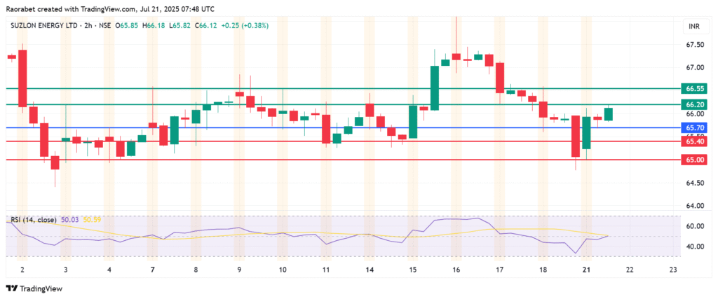 Suzlon Energy share price pivot mark is at ₹64.50 and action above that level favours the buyers to be in control. The stock will likely head higher and meet initial resistance at ₹66.00. However, and extended control by the buyers will break above that level and test ₹66.20.