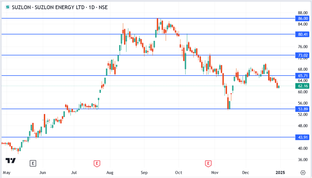 Suzlon Energy Ltd. (NSE: SUZLON) shares have faced increasing bearish pressure, reflecting broader market sentiment and recent challenges in the renewable energy space. The stock has declined significantly from its recent highs, leaving investors wondering whether Suzlon can stage a comeback in 2025.