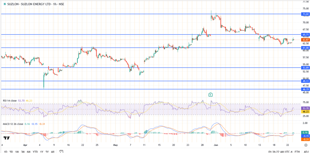 - Upside levels: ₹63.70, ₹66.30, and ₹68.90