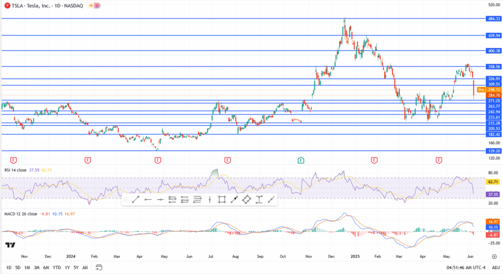 Shares of Tesla Inc. (NASDAQ: TSLA) dropped to $284.70, the lowest closing price in nearly three months. The decline followed a back-and-forth between Musk and Trump that began earlier this week and intensified after Musk publicly criticised the President’s “One Big Beautiful Bill”, a sweeping tax reform that was passed on party lines.