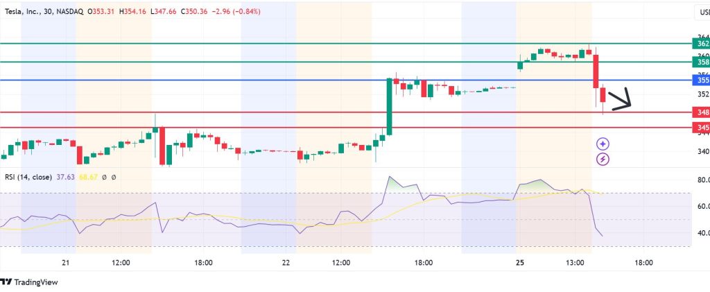 Resistance: Moving above the pivot will shift the momentum towards the downside. The first resistance is likely to be at $358. Extended control by the buyers will break above it and invalidate the downside narrative. That could trigger a stronger upside momentum to test $362.