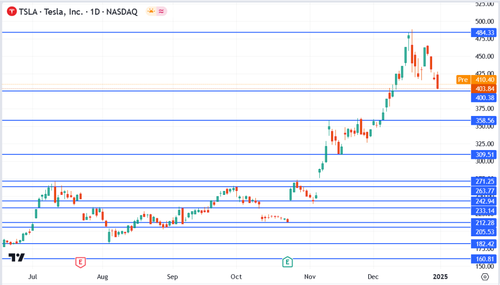 As we enter the second day of 2025, Tesla’s stock continues to be in focus, drawing the interest of both traders and investors. After achieving almost 50% growth in the final quarter of 2024, the EV leader starts the new year facing high anticipations and close examination.