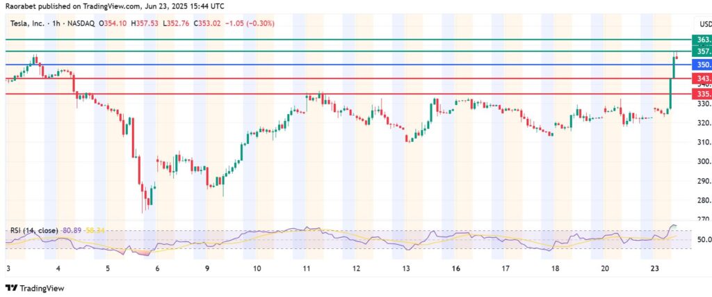 Tesla stock price pivot mark is at $350 and action above that level will favour the buyers to stay in control. The stock will likely meet initial resistance at $357. However, an extend control by the buyers could push the action higher and test $363.