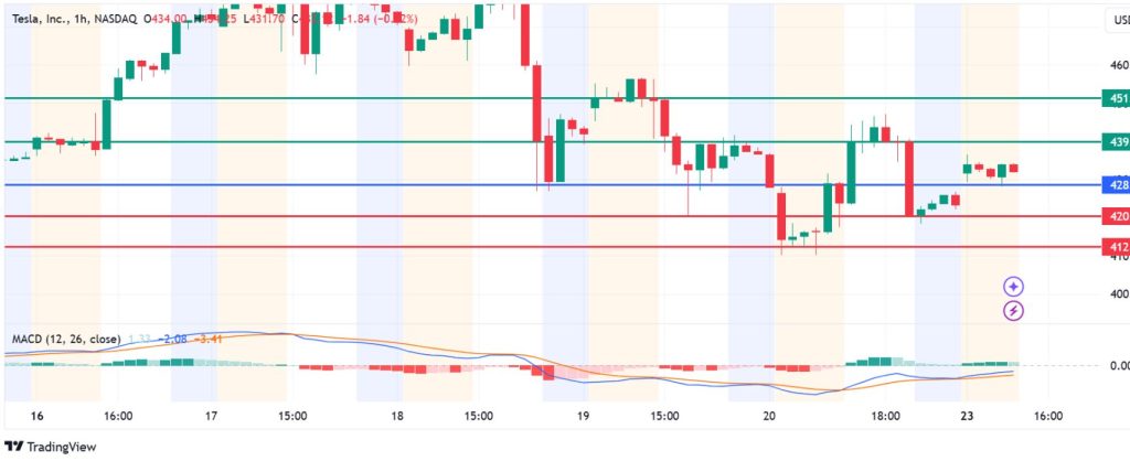 Conversely, moving below $428 will put sellers in control. If that happens, TSLA will likely find the first support at $420. However, a stronger downward momentum could break below that level and invalidate the upside thesis. Also, the stock could decline further and test the second support at $412.