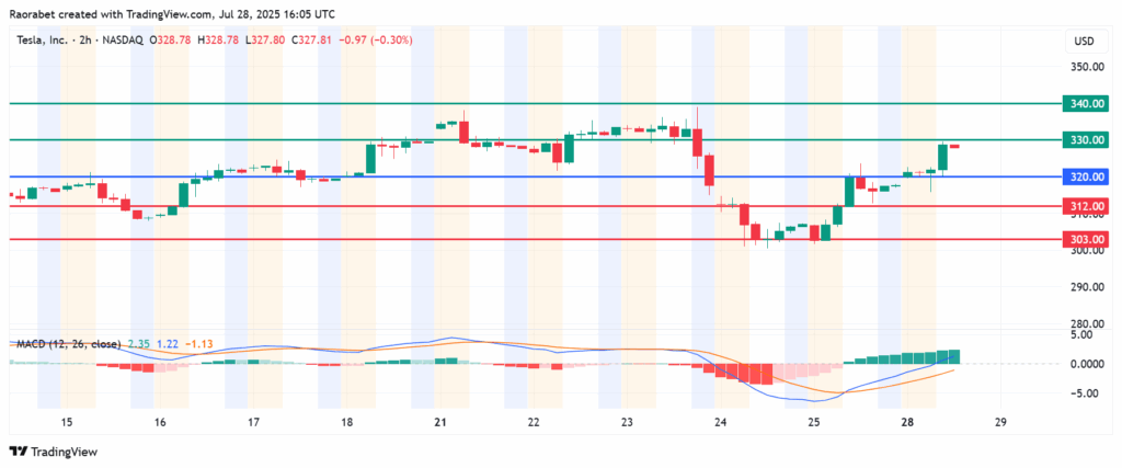 Tesla stock price rose sharply in the week’s opening session on Monday, establishing support above the $320 mark after rising by more than 6% in the first hour of trading. The momentum cooled shortly thereafter, but the stock remained on the upside trajectory, trading at $327 at the time of writing.