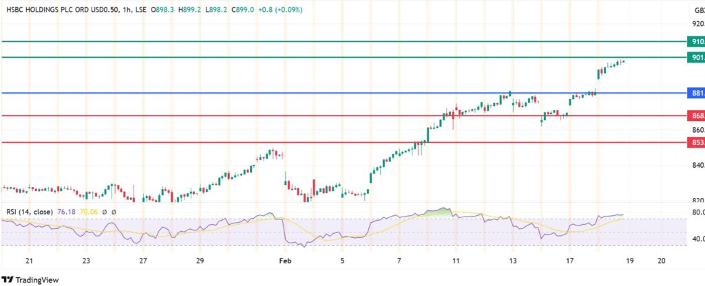 The cost-cutting measures come ahead of an impending release of the bank’s earnings report on Wednesday, which has also injected volatility into the stock. HSBC share price rose to GBX 899, the highest level since August 2013. That has injected sentiment-driven bullishness in the stock that supports further gains.