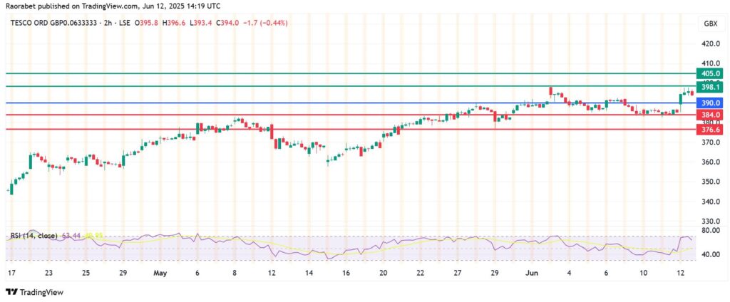 Resistance: Initial resistance likely to be at 398.1p. Second resistance like to be established at 405p.