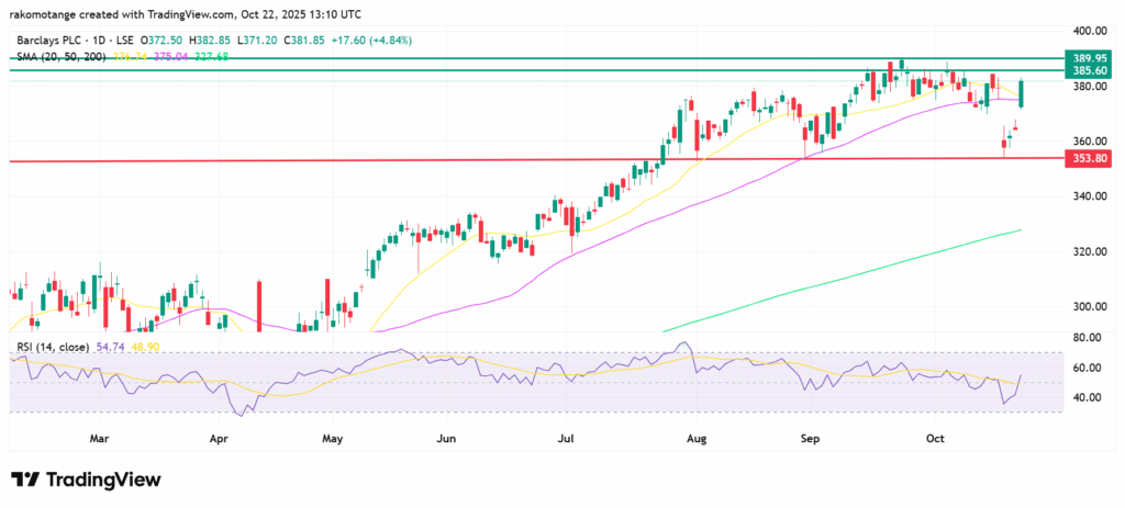 Barclays’ stock is expected to gain due to a strong earnings in Q3 which exceeded analysts’ expectations. Also, the announcement of a new £500 million share buyback program and trading above the rising 200-day Simple Moving Average (SMA), support a long-term uptrend.