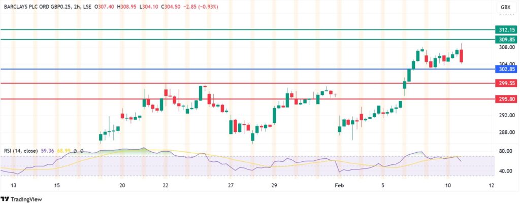 Resistance: The first resistance is likely to be at GBX 309.85, beyond which the next target could come at GBX 312.15.