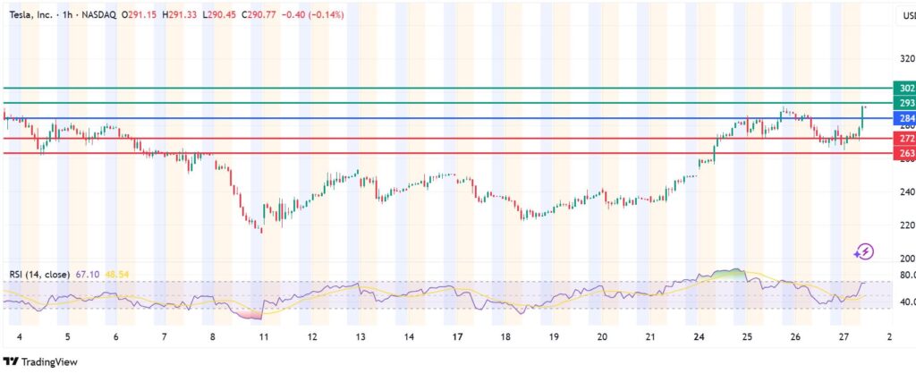 Pivot: TSLA stock price pivots at $284