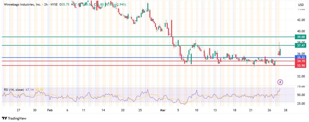 Winnebago stock pivots at $32.32. The upside will prevail if the stock stays above that level. Conversely, breaking below it will shift the momentum to the downside.