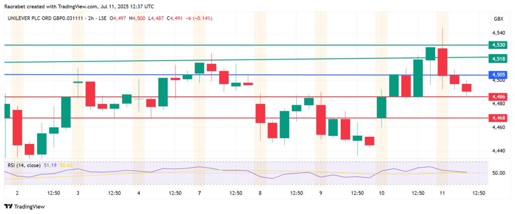 Unilever share price traded downwards on Friday, trading at 4,493p at the time of writing after declining by 0.7%. The stock outperformed the broader UK equities market on Thursday on the heels of a €1.5 billion share buyback program completion, which boosted investor confidence. A key catalyst for the recent movement is Unilever’s ongoing corporate reshaping, particularly the planned spin-off of its €15 billion ice-cream business.