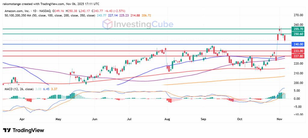 Amazon stock price 1-day chart on November 6,2025. Source: TradingView