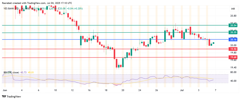 Yes Bank share price dipped slightly to around ₹20.05 on Friday, down from yesterday’s close of ₹20.15. While the move wasn’t drastic, it reflected a cautious investor reaction to the bank’s Q1 FY26 business update, which came out earlier in the day.