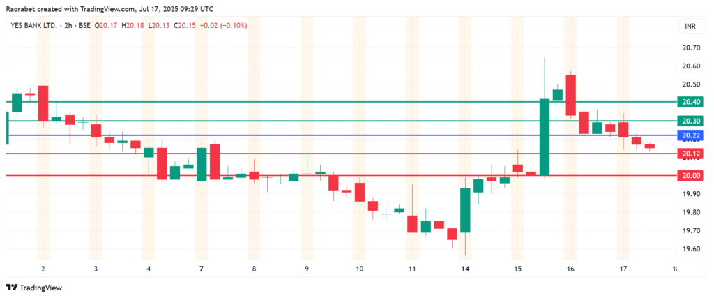 The momentum on Yes Bank share price calls for further downside below ₹20.22. That motion will likely meet the first support at ₹20.12. Breaking below that level will signal a stronger momentum that could extend the downside to test ₹20.00.