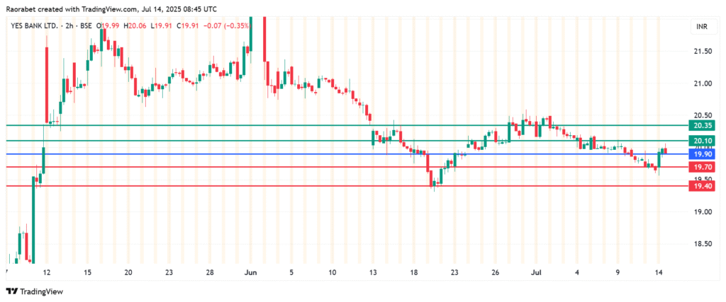 Yes Bank share price pivot mark is at ₹19.90 and action above that level will give buyers control. The first resistance is likely to come at ₹20.10, but a stronger momentum will breach that barrier and potentially push gains higher to test ₹20.35.